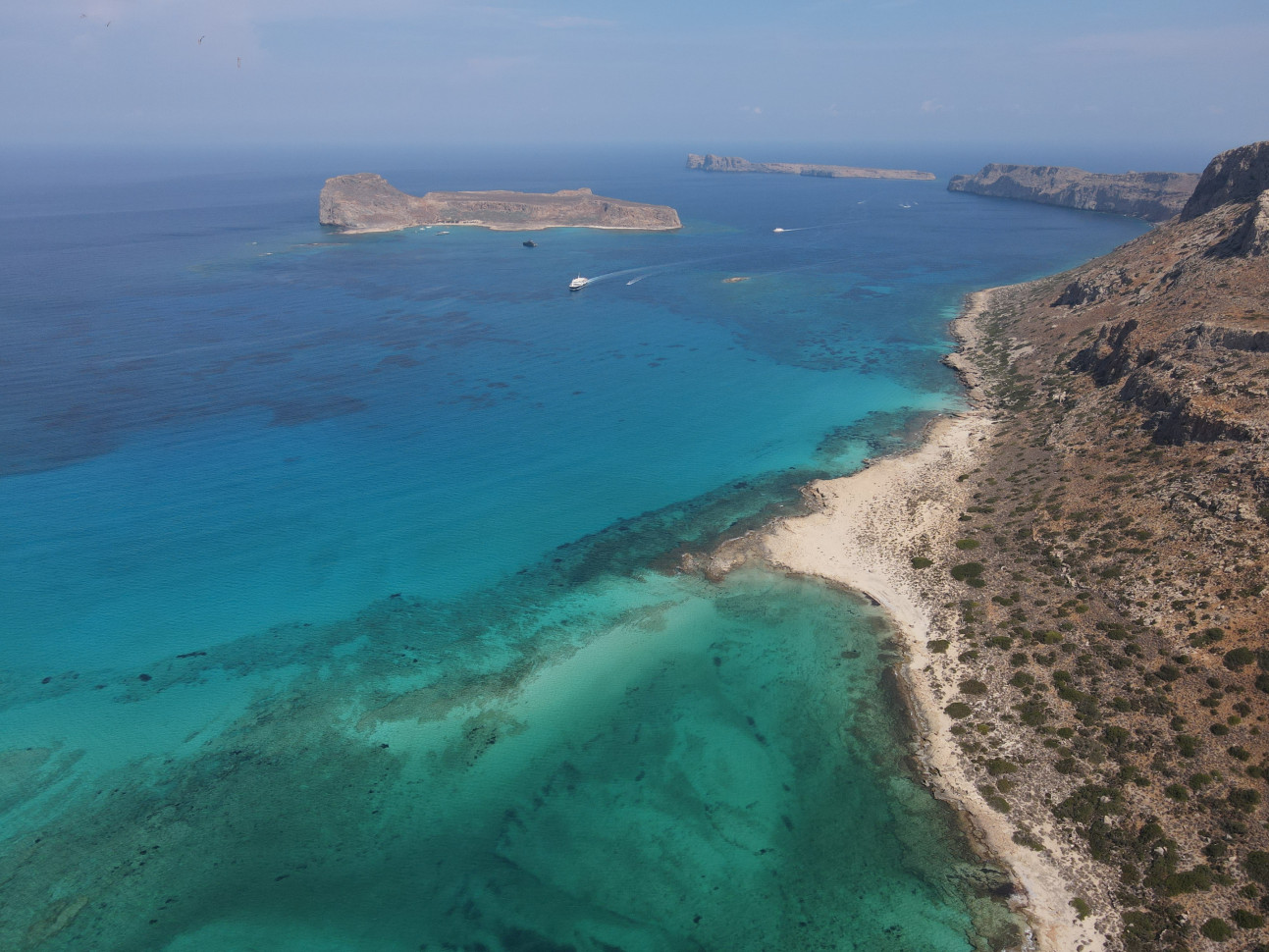 The boat will arrive at the small port of Gramvousa island, from where a path begins that leads to the nearby beach of Agioi Apostoli and the castle of Gramvousa. The position of Gramvousa, the Cretan nature, the legends and the passage of time have contributed to the magical aura of the island. The landscape is spectacular, and the beach of the island is adorned by a lonely shipwreck.