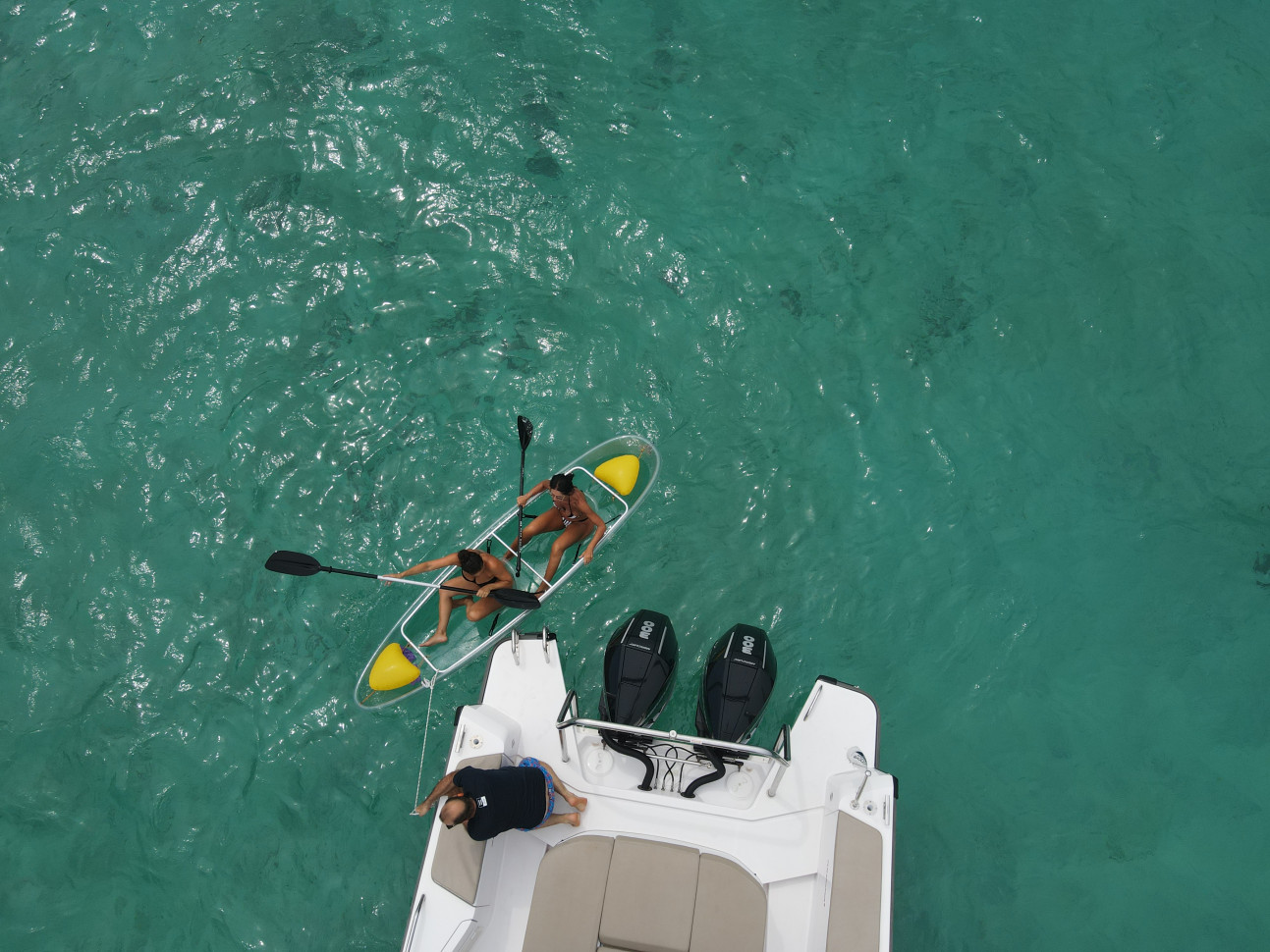 - 1 transparent Kayak, 2 SUP, 2 sea scooters