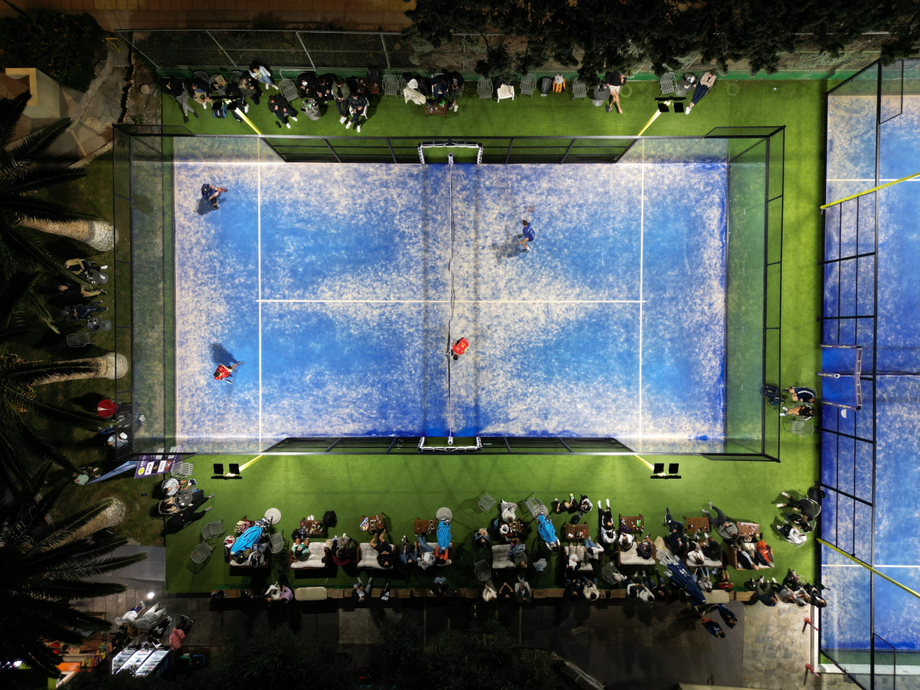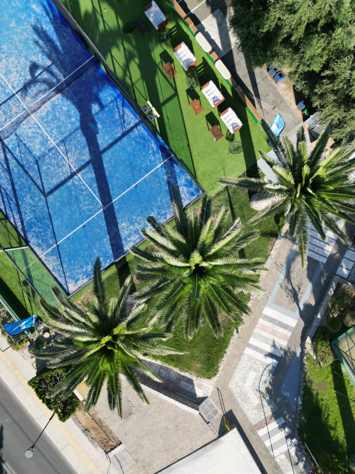 - Outdoor Padel & Tennis courts surrounded with palm trees,