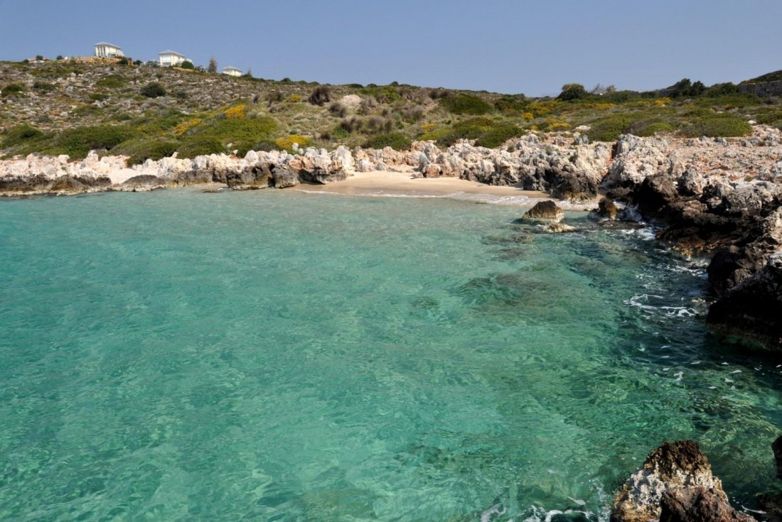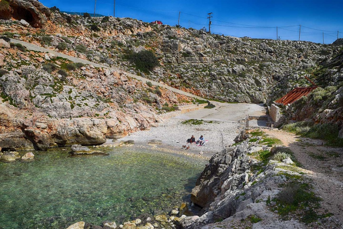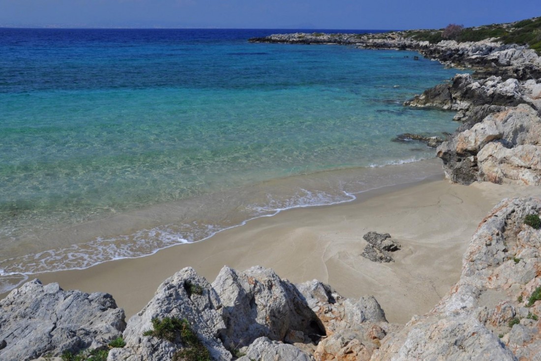 The small beach “Macherida” is located 14km northeast of Chania and 1km west of Chorafakia village, hidden in a rocky bay. The bay faces the south and is almost always serene. In the center, it forms a beautiful small beach with white sand and turquoise waters, surrounded by beautiful cliffs. The water here is deep and pure, due to the currents that change direction many times in a day. The beach is not organized, although the area around has been developed enough in recent years. Because of its isolation, it is one of the most famous nudist beaches in Chania.