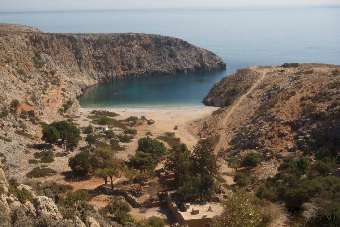 This secluded beach forms the shape of a lake, hence the locals call it “Aspri Limni” (White Lake). It is one of the most beautiful Chania secret beaches, almost unknown to anyone. It is located 500m. west of the Monastery of Chrisoskalitissa and 70km southwest of Chania. Although crowds of tourists enjoy their swim in the neighboring exotic Elafonisi beach, they ignore the existence of this little earthly paradise. “Aspri Limni” is a very small unorganized beach with white sand. The rocks, surrounding the beach, create a natural barrier and a lake with white sand. There is no natural shade, and still remains completely unspoilt. On your trip to Chrysokalitissa and Elafonisi, it is really worth a visit to that beach. In order to get there, you may stop at Chrisoskalitissa and ask the locals, who are really hospitable. Alternatively, you may, simply, follow the small signs that the Forestry has placed, leading to the few Cretan palm trees, existing next to the beach. The first sign is 100m before the monastery of Chrisoskalitissa.