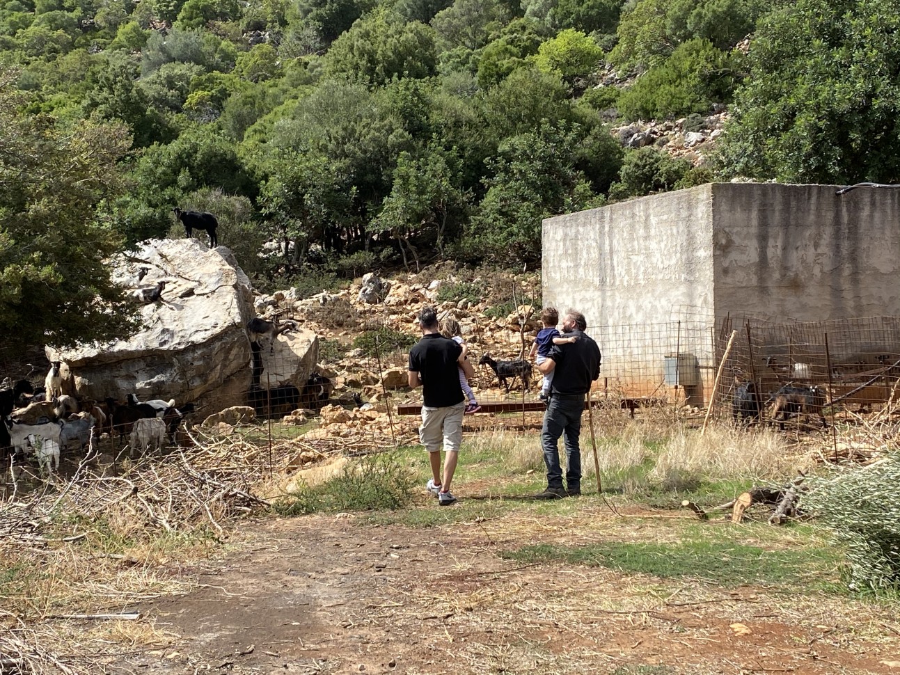 At the entrance, three huge trees create an impressive door that welcomes us to their land. Mr Andreas, the shepherd, is there to "kalosorisei" us (kalosorisma = greeting) and show us what a day in his life is like. Learn about his routine, daily habits, milk production process and caring for the goats while you try some typical Cretan appetizers such as cheese, olives and a glass of raki. But the best part is here to come; be prepared to watch a herd of 100 goats flow freely out of their stockyard and dash towards the high hills. This powerful moment is guaranteed to stay in your memory forever.
