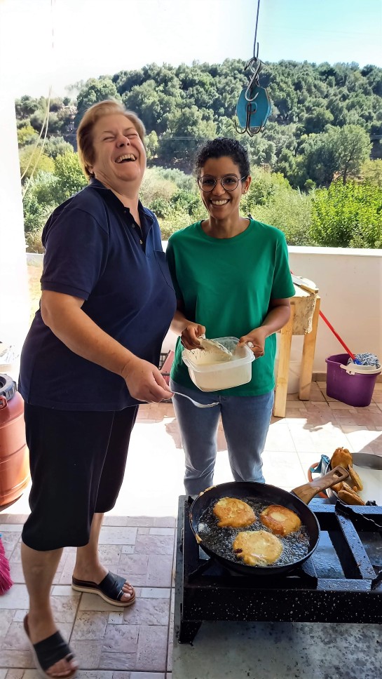 An integral part of the Cretan tradition is the warm hospitality of the locals. After having shared their daily habits and their mastery secrets, Mr. Andreas and Mrs. Eleni open their house to us. Situated high up in the mountain, with beautiful and calming views of the village, this house is buried between flowers, trees and herb bushes. While we enter, their aromas will certainly captivate our senses. As we have a seat, Mr Andreas opens a bottle of wine and offers us a glass, while Mrs Eleni finishes up the lunch she has prepared especially for us. Enjoy the taste of local organic products and finish the meal with a delicious dessert, such as sweet cheese pies (pitakia) with honey on top. Enjoy!